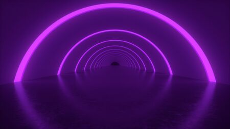 Purple neon corridor interior. 3D rendering. Neon lights.