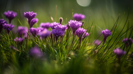a bunch of purple flowers that are in the grass. Generative AI illustrator