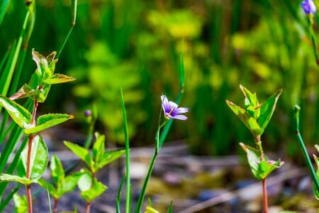 Lovely Contrast: Small Purple Flowers with Green Stems in a 3:2 Perspective