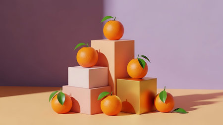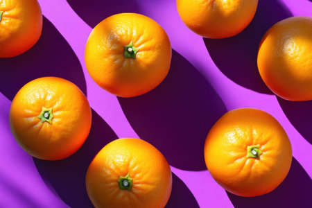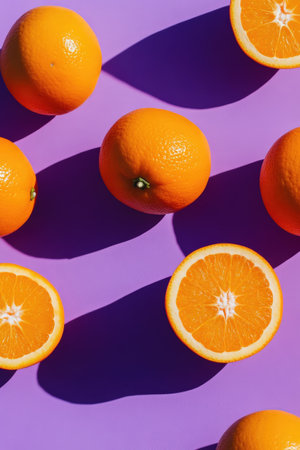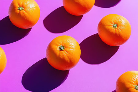 Citrus Oranges Casting Shadows on Purple Surface