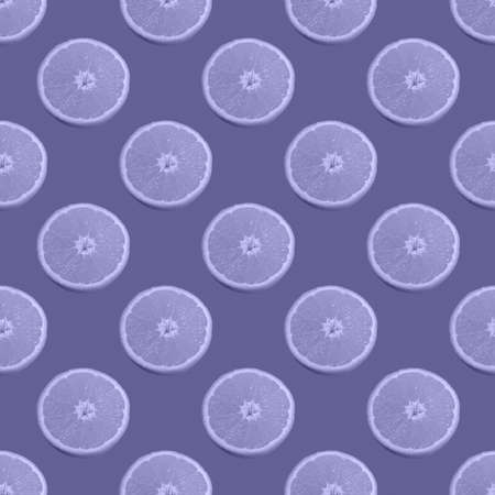 Fashionable seamless pattern of toned half of an orange isolated on Color of the year 2022 Very Peri. Trending color 2022