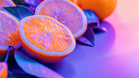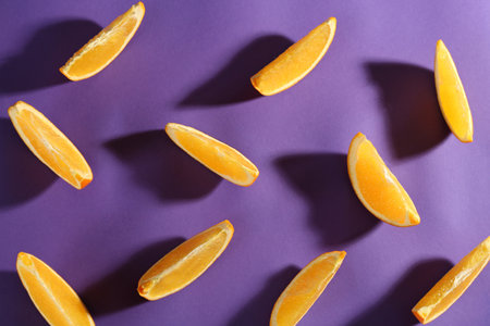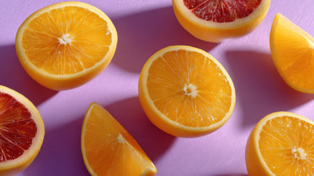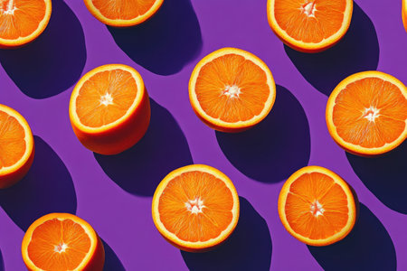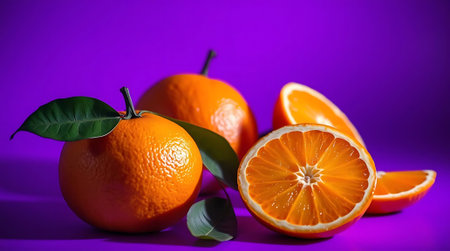 Vibrant Purple Background with Juicy Orange Slices