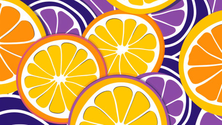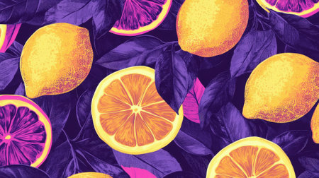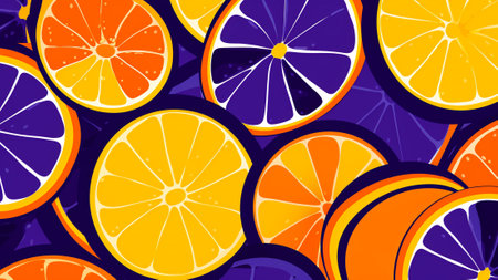 Colorful Orange Citrus Pattern on Deep Purple Background