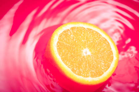 sliced ​​orange on a pink background. The concept of healthy food, Vitamin C. copy space