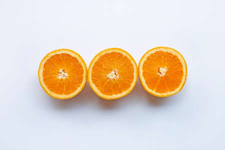 Fresh orange citrus fruit isolated on white background. Top view