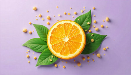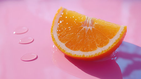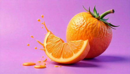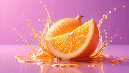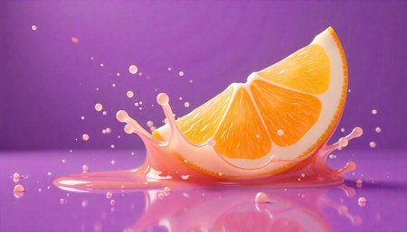 Vibrant orange slice splash against a pastel purple background