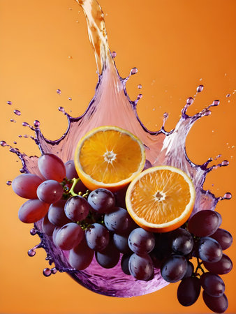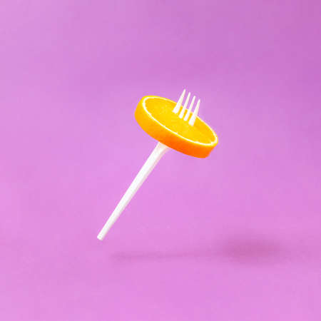 bright juicy orange and splashes on violet background