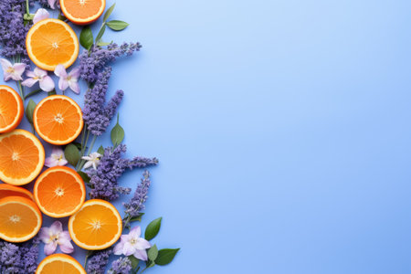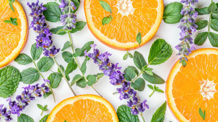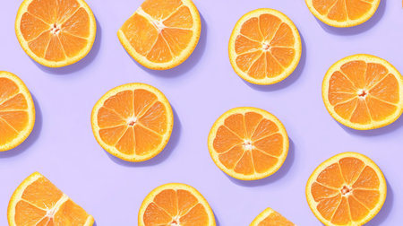 Orange slices scattered on a light purple pastel background, creating a playful fruit pattern.