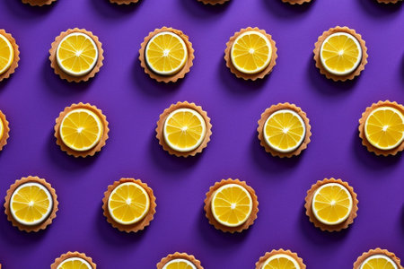 orange fruit circles on a purple background.pattern aesthetic design concept idea