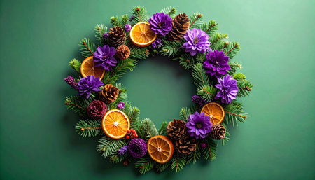AI Generated. A cluster of oranges atop an icy mound adjacent to a purple background