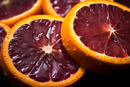 Slices of red orange on a black background close-up