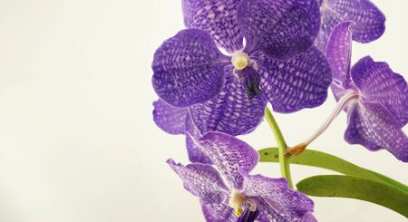 Beautiful purple orchid flowers on light background with copyspa