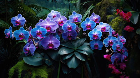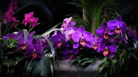 Vibrant Purple Orchids Blooming Amidst Green Foliage in a Lush Environment with Delicate Petals Showcasing Natural Beauty of Nature's Diversity