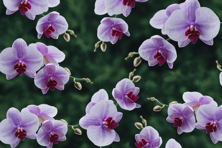 Orchid flowers with green abstract background in a pattern .Floral background.