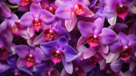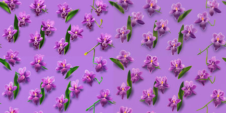 Seamless pattern of purple orchids on a purple background.
