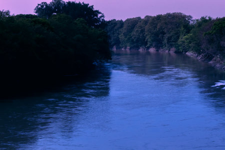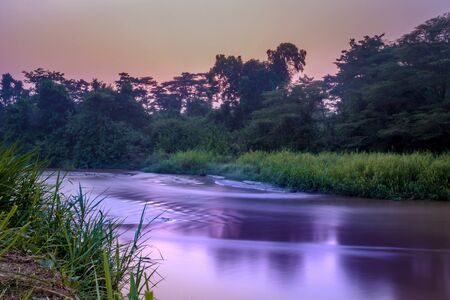 beautiful landscape on the river at night with purple sky in the nature of blue color with space to write. in Cali.