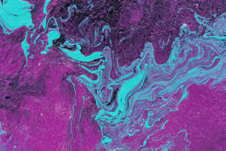 fluid art. Purple pink turquoise paint mixed. Trendy velvet violet color 2022. A flowing shiny surface. Slow movement, beautiful swirl lines. A fashionable original hobby. Creation of a work of art.