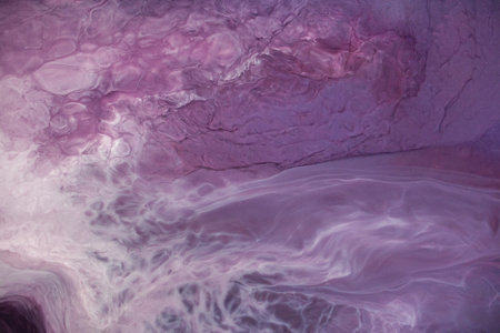 Acrylic Fluid Art. White waves and violet frothy bubbles.