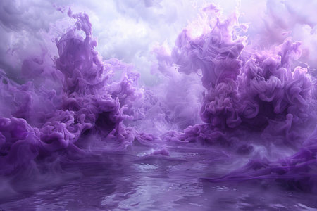 Blur water ink. Marble paint. Defocused purple color glowing steam texture ink paint splash emulsion floating abstract art background.