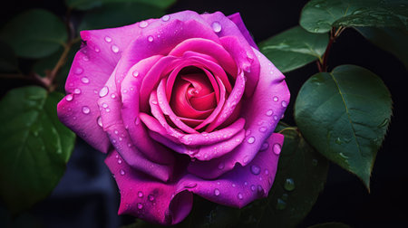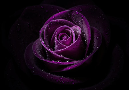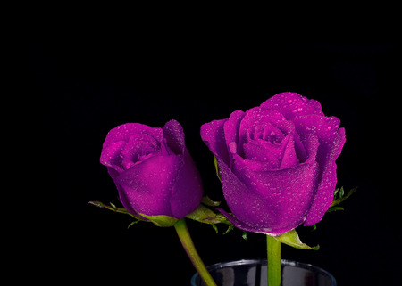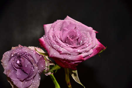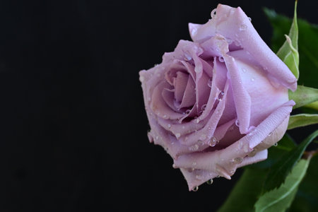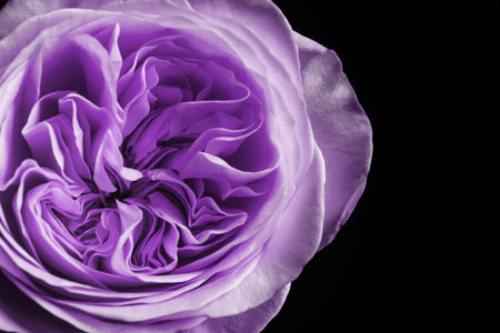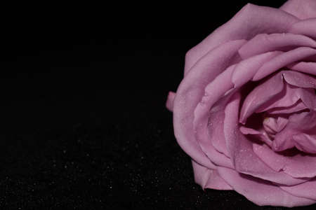 Beautiful delicate dark lilac rose flower close-up on a black background