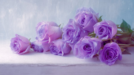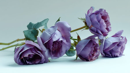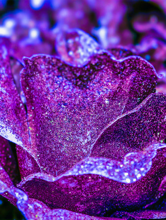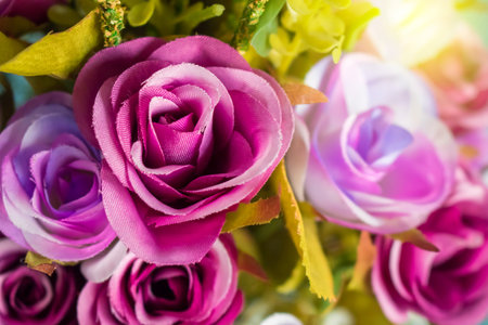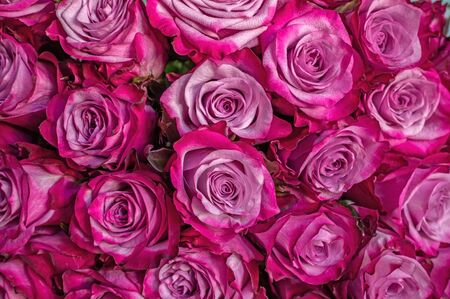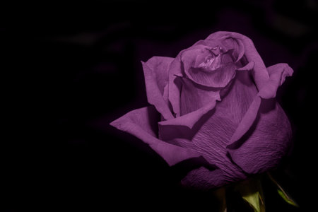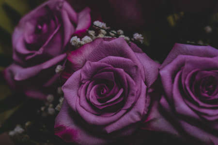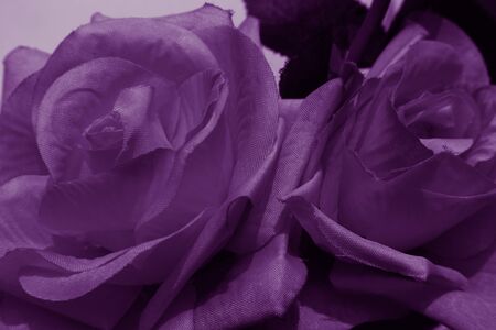 Close up of rose petals toned in lilac or violet color. Soft selective focus.