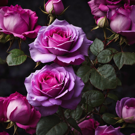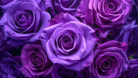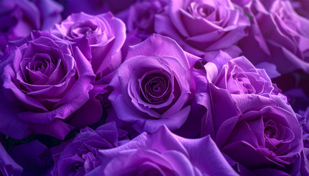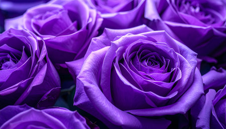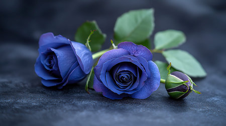 Blue roses flowering, petals on big bud. Exotic floral carpet surface texture