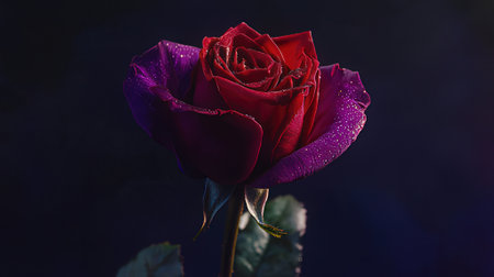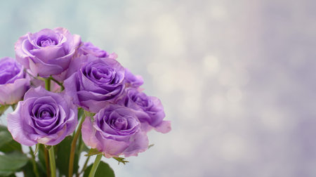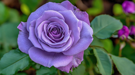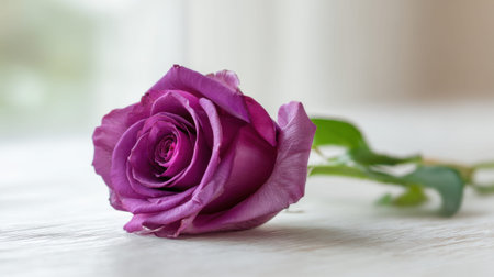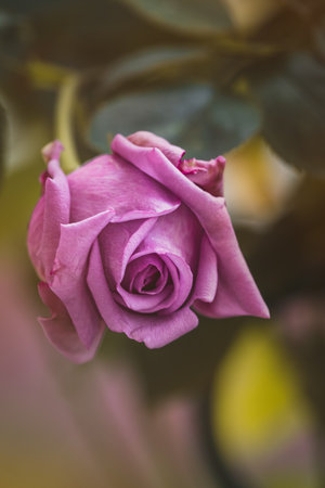 Purple rose in bloom against beautiful background. Mother’s Day and Valentine’s Day concept.