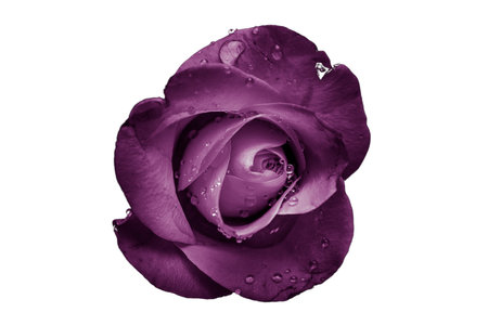 Beautiful purple rose with water drops isolated on white background. Studio shot.
