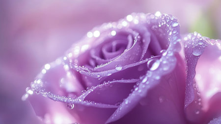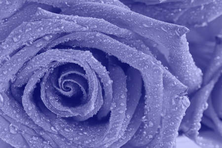 Very peri violet rose in water drops, closeup macro, trend color, selective focus