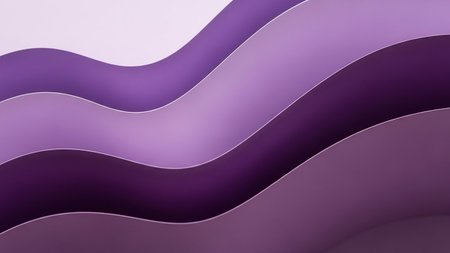 Abstract background with smooth, undulating waves of layered paper in a gradient of purple hues, featuring subtle shadows and gentle curves.