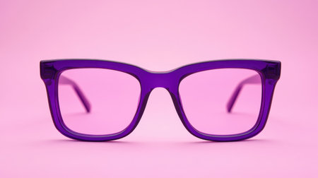 A striking pair of stylish purple glasses set against a vivid pink background, highlighting contemporary fashion trends and colorful accessories for modern consumers.