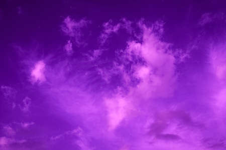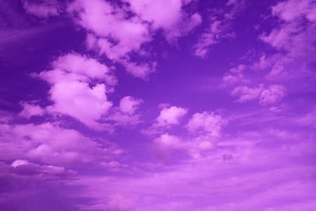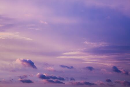 Violet sky background, sky with white pink clouds