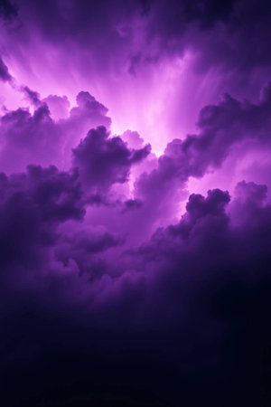 Dramatic purple stormy sky with glowing clouds. Abstract background