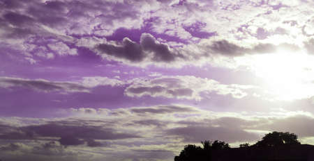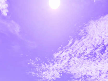 Bright purple sky, romantic shining sun, natural beauty color background.