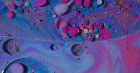 Oil droplet. Liquid background. Blur purple blue pink color ink in marble water round texture flowing on creative art abstraction.