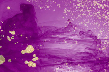 Liquid particles spill. Ink blend. Blur purple black color shimmering texture paint mix flow swirl abstract art background.