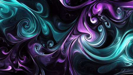 Black background, teal and purple metallic waves in swirls. --ar 53:30 --v 6.1 Job ID: dd83e44f-8e20-4d50-8593-903a55b9e5a4