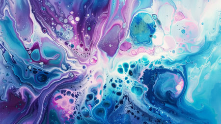 Fluid art texture. Abstract backdrop with mixing paint effect. Liquid acrylic artwork that flows and splashes. Mixed paints for background or poster. Purple, blue and white overflowing colors