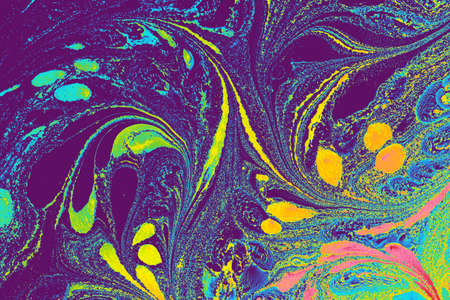 art photography of abstract marbleized effect background. Yellow, gold, blue, purple, pink and white creative colors. Beautiful paint