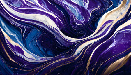 Vibrant blue and purple liquid abstract texture with flowing metallic sheen and dynamic wave patterns.