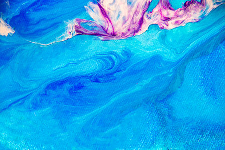 Fluid art texture. Background with abstract mixing paint effect. Liquid acrylic artwork with flows and splashes. Mixed paints for background or poster. Blue, purple and white overflowing colors