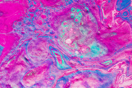 Abstract background of the liquid acrylic paint in pink and blue tones.