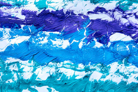 Blue abstract creative hand painted background, fragment of acrylic painting on canvas, wallpaper, texture. Modern art. Contemporary art.