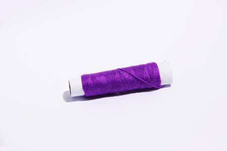 spool of purple thread on white background