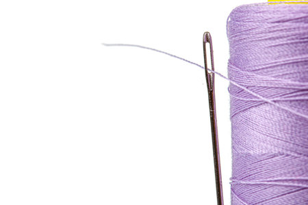Purple thread bobbin and needle.Useful as tailor background