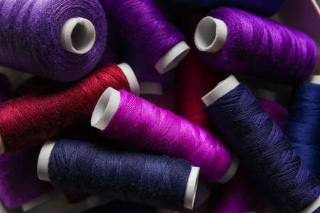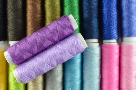 Colourful sewing threads background closeup