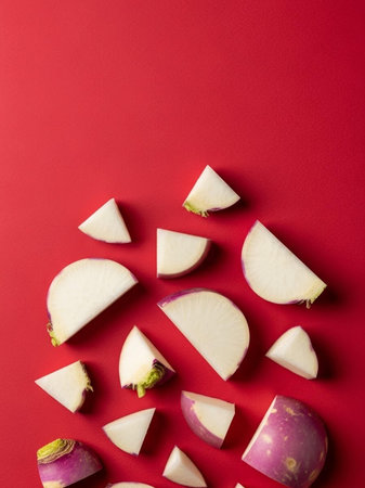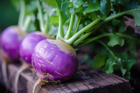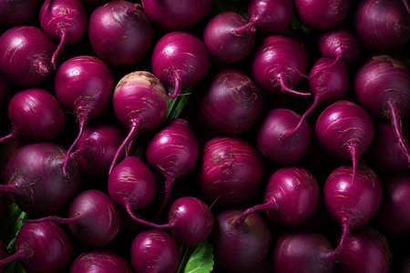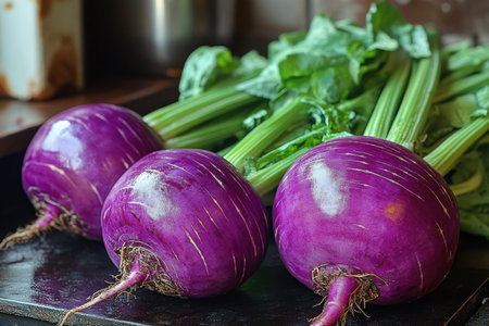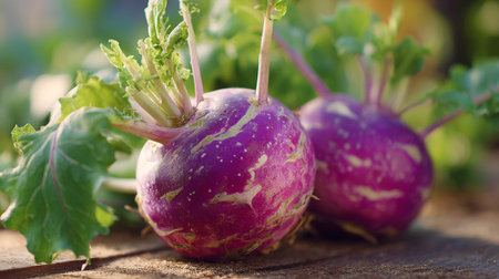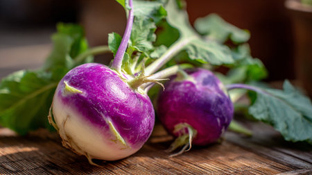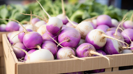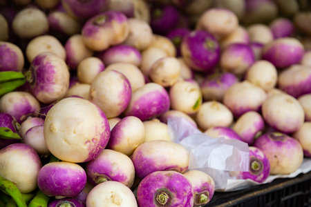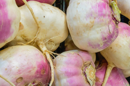 A close-up of fresh purple and white turnips. Perfect for healthy eating, cooking, and farming concepts.