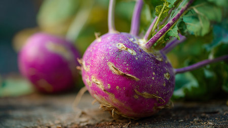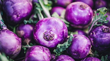 Close-up of organic kohlrabi, vibrant and purple, perfect for healthy recipes.