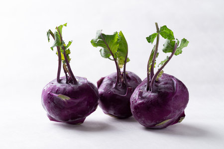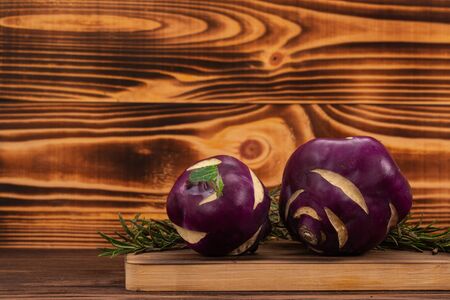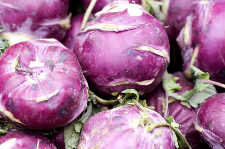 Fresh purple kohlrabi vegetable bulbs, a healthy, organically grown food source