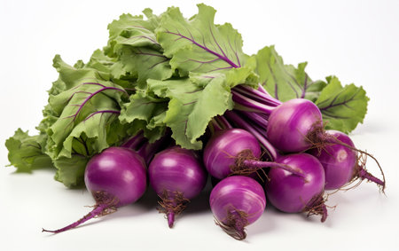 Studio isolated shot of white turnips with purple tops